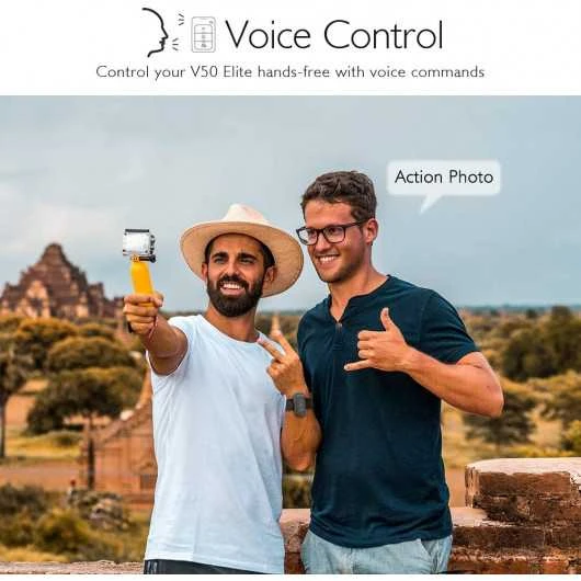 VOICE CONTROL: You can control your AKASO V50 Elite action camera hands free with voice commands Like “Action Start Video” and “Action Photo”.