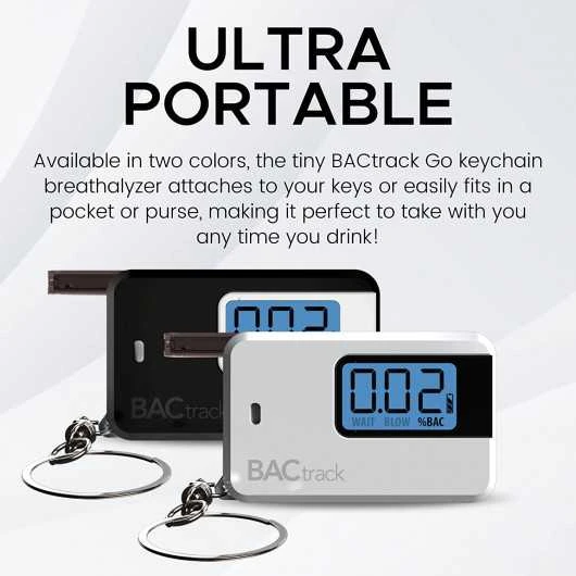 TAKE IT WITH YOU ANYWHERE – The ultra-compact BACtrack Go breathalyzer keychain easily fits in a pocket or purse, making it a great portable breathalyzer for any occasion.