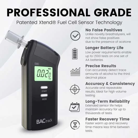PROFESSIONAL-GRADE ACCURACY – Powered by BACtrack’s largest platinum-based Xtend Fuel Cell Sensor, the S80 utilizes the same pro-grade technology trusted by hospitals, clinics, and even law enforcement.