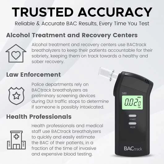 1 RATED BREATHALYZER BY WIRECUTTER – “After 65 hours of research, which included getting intoxicated at a police station to test personal breathalyzers alongside law enforcement equipment, we’re sure the BACtrack S80 is the most accurate, reliable, and easiest-to-use personal breathalyzer that you can buy.” – TheWirecutter, February 2022.