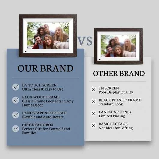 With the BSIMB Vision connected photo frame, you can share photos and videos with your family from anywhere. Note that you can only share videos of up to 30 seconds. Thus, you will stay in touch with your family, wherever you are through this connected frame. Moreover, it offers a high definition resolution of 1280 x 800. So you’ll have clear, vivid, and well-colored images. And with its extra-wide IPS viewing angle display, you’re sure to get an optimal view of your photos or videos. Plus, this frame has an automatic adjustment so you can switch modes in no time. To switch from landscape to portrait mode or vice versa, simply rotate it. Besides that, this digital photo frame can store up to 40,000 photos. Indeed, it has a built-in memory of 16 GB. Finally, this photo frame allows you to do a multitude of things since it is an all-in-one frame. This electronic photo frame displays for example the time, the calendar, the weather, etc.