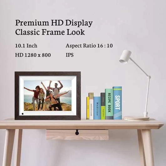 BSIMB Vision 10L is designed with a sophisticated, elegant and modern design. Moreover, it is designed with a wood effect, which accentuates its sophisticated and elegant side and allows it to blend better with any style of decor. Moreover, it can be a nice decoration, whether you place it on a bedside table, a desk or even a living room mantle. Besides that, this digital photo frame is designed with a 10.1-inch screen. Your frame will not go unnoticed and your photos will be displayed in its entirety. It should be noted that the screen of this electronic photo frame is an HD IPS touch screen. This accentuates the modern side of the photo frame, but also facilitates its use.