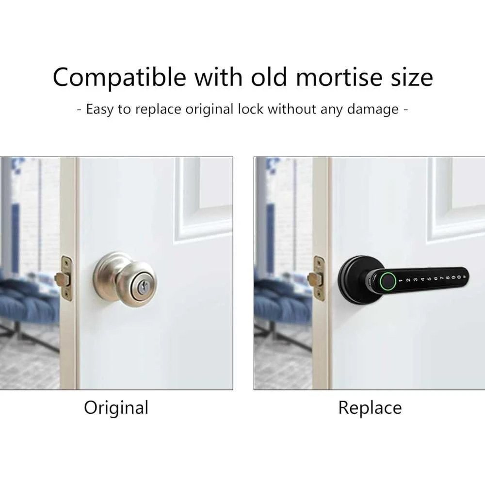 【USB + Backup key,Double Assurance】Low battery alarm on TT Lock App(Free APP),with emergency power interface and backup key.When the power is critically low or the battery is completely drained,don’t worry,use the backup key to open the door,micro USB power bank also can be a temporary power supply.Never be locked out.