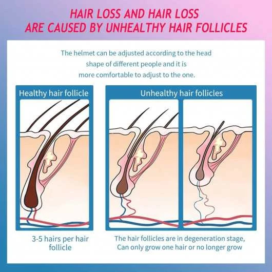 Visible hair improvement can be seen after 3 to 6 months of use for 20 to 25 minutes of treatment every other day. The device is suitable for hair loss, seborrheic alopecia, hereditary hair loss, postpartum hair loss, stress hair loss, poor hair quality and various hair loss problems.