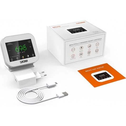 CURCONSA is a device that allows you to be aware in real time of the temperature, humidity and carbon dioxide in your home, offices, bedrooms, living rooms, kitchens, schools, etc. It is powered directly from the mains and has a 3.5 inch touch screen for easy control.