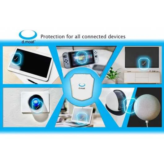 d.moat connects to your router and defends like a firewall, protects like an antivirus and is smart enough to shield against emerging cyber threats. d.moat protects all Internet connected devices in your home – including smart phones, tablets, and home appliances. If a device connects to the Internet, it can be hacked. Through a compromised device, hackers can steal your identity or even steal financial data. d.moat is designed to protect all connected devices against dangerous attacks so you can use your smart devices without worrying about the risks. You can’t install anti-virus on these smart devices and firewalls alone will not protect you against unknown threats. d.moat protects all devices on your network and continuously updates its software as new threats are discovered.