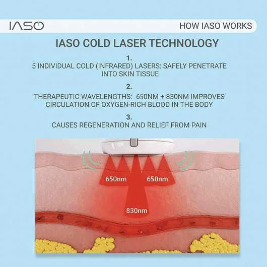 Iaso is a red light therapy device and massager that works to relieve pain of the back, foot, neck, shoulders, wrists and knee area. It is wearable and compact so you can take it with you anywhere and also rechargeable so that you can use it at any time. It uses the advanced low level laser therapy (LLLT) technology. LLLT stimulates healing of body tissues and causes regeneration and relief from pain.