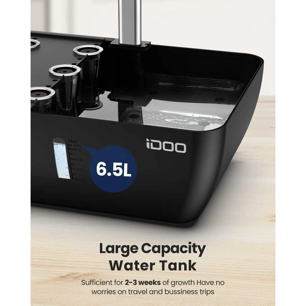 6.5L Large Water Tank: iDOO 6.5L super large water tank is a must for matured plants. It provides a larger space for the root development and will keep your plants fresh for about 2 or 3 weeks without watering, never worry about lack of water while you are out of the house or on vacation.