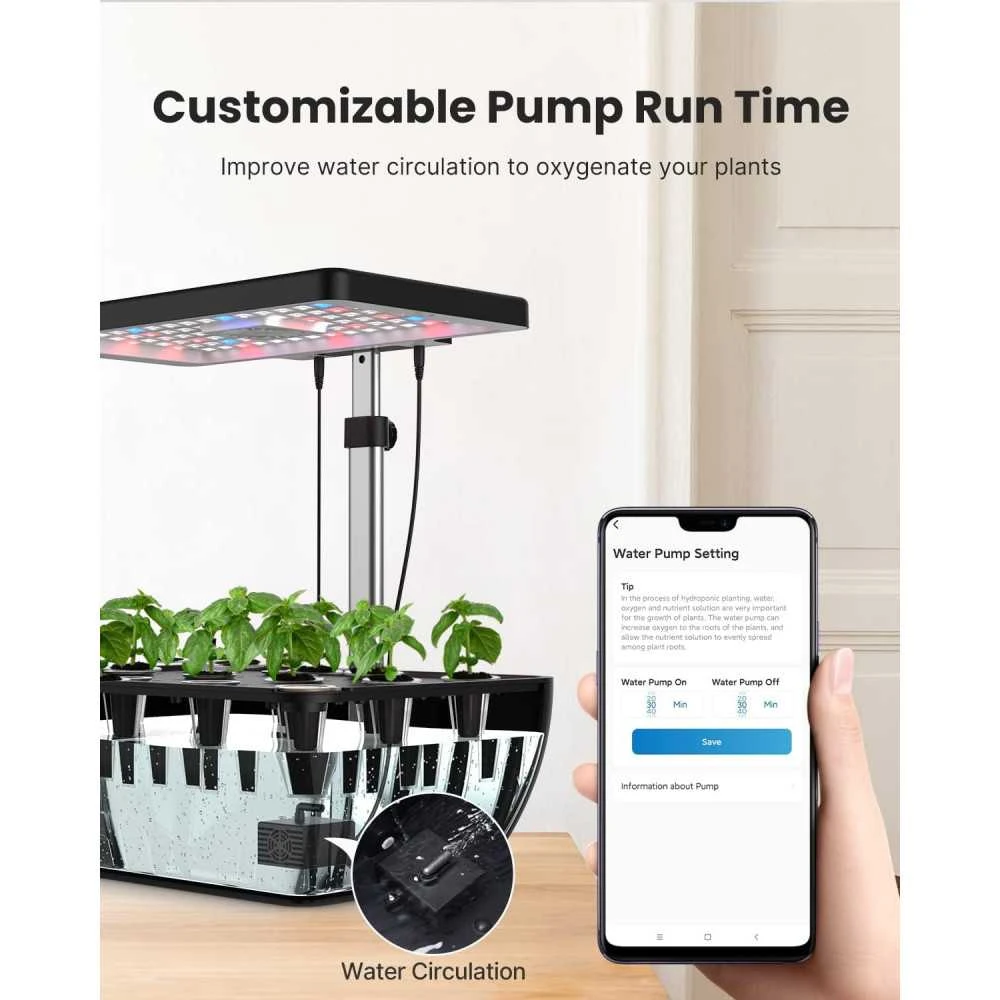WiFi Enabled with App Control: Pair the hydroponics growing system with the “Gennec” app using WiFi to remotely control your hydroponics system at any distance. Freely adjust the light time to fit for day shifters or night workers. Adjust the fan and pump runtime according to the different growth stages of your plant. Keep a diary for your plants to make important notes and better experience the joy of planting. (Only compatible with 2.4GHz Network).
