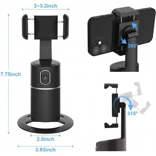 It does not require any application or camera of your cell phones, it has a support that can spread from 5 to 7.62 cm to accommodate all types of phones with rotation speed of 42 ° per second. The stand allows you to rotate 360° and tilt 315°, ideal for portrait or landscape shooting to provide a wide variety of shooting angles.