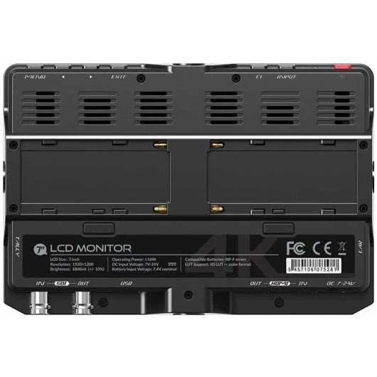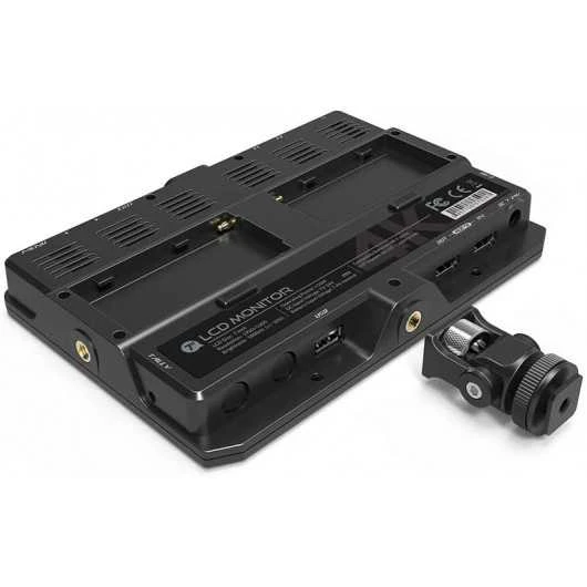 It has a ¼ thread found at the base and on one side to attach the claw that is included for 180° tilt and 360° rotation. On the back of the monitor is a dual L-series battery plate so that you can power the monitor to give you long battery life. It includes various buttons that allow you to choose between the options offered but also to customize shortcuts through definable F1 and F2 buttons.