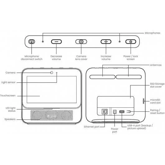 The touchscreen monitor has a simplified interface allowing you to see in real time what the cameras are seeing, it supports up to 8 1080p cameras and 4 4K cameras just using WiFi connectivity. The 7-inch monitor serves as your control of the cameras, it has several buttons allowing you to activate two-way communication, increase or decrease the volume, apply the lens cover for privacy or to prevent camera hacking. It has two built-in microphones allowing you to have a smooth two-way conversation in real time.