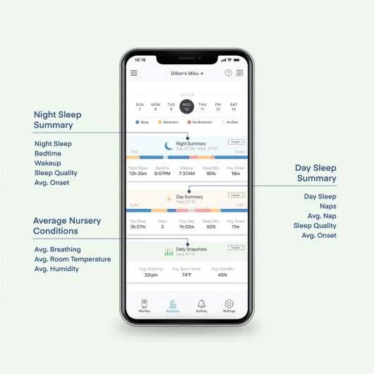 TRACK BREATHING & SLEEP WITH NO WIRES OR WEARABLES: Miku Smart Baby Monitor works with your smartphone to track breathing, movement, sleep patterns, and nursery conditions such as temperature and humidity. Note: Wi-Fi connectivity is subject to individual routers.
