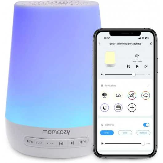 Momcozy White Noise Machine with 34 high-fidelity sounds (11 white noises, 3 fan sounds,8 lullabies and 12 nature sounds). Let you choose the ideal background to mask intruding noises and create the perfect environment for work, study, sleep or an upset baby.