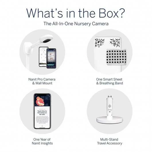 Nanit Pro Complete Monitoring System provides you a complete view of your baby thanks to a system that includes the Nanit Pro Camera, a small Breathing Band, a Multi-Stand, and the Nanit Smart Sheet. You have everything needed to see, hear and speak to your baby, plus track their sleep, breathing motion and growth. The camera mounts to the wall above your crib to give you a 1080p birds-eye livestream view of your baby, day or night from anywhere on your iOS, Android, Kindle Fire, or Echo Show device. You get your baby’s personal sleep dashboard and trends to understand everything from how long they slept, to how many times you visited them every night. Pop the Nanit camera out from your wall mount and pop it into the Multi-Stand to bring it on-the-go. With its wide-angle view, get a view of the whole room.