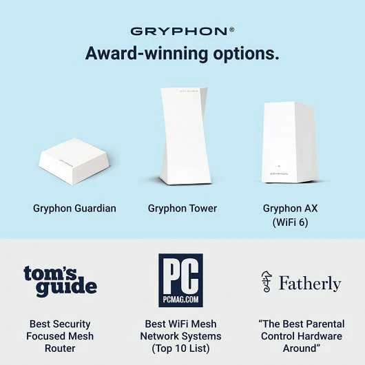 PROTECT YOUR CONNECTED HOME – Experience safe, reliable Internet for your family or small business with Gryphon AX—the all-in-one Mesh WiFi 6 Router, engineered to deliver fast, efficient coverage, enhanced security, and advanced parental controls without any data bottlenecks
