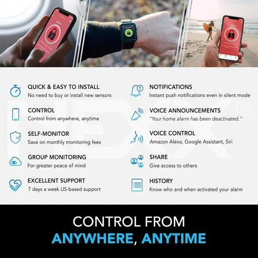 EASY INSTALLATION – Smarten up and automate your alarm system in 10 minutes. No need to buy or install new sensors. Our STANDARD FREE plan is more than enough for most, including voice activation using Alexa, Google, Siri, notifications, history log, and more!
