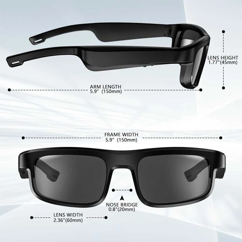 【Polarized Sunglasses Lenses】GAXABI smart glasses features UV400 polarized full-protection lenses protect your eyes from the sun with excellent color, clarity and contrast.And the bluetooth sunglasses are made of TR90 material , it will be more durable.