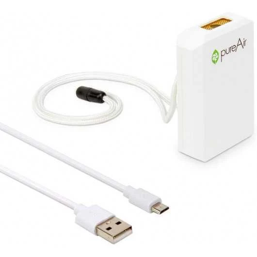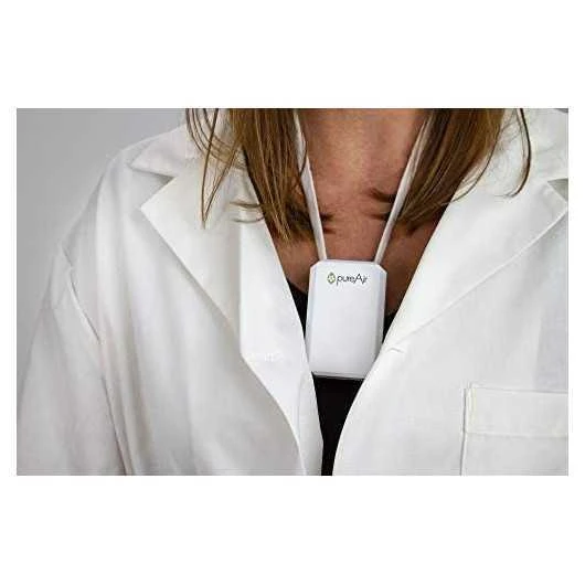 pure Air SOLO is an air purifier that is worn around the neck and prevents VOCs, bacteria, allergens, viruses, and other foreign particles from encroaching on the air in the immediate vicinity. It has a rechargeable battery that can provide up to 28 hours of use.