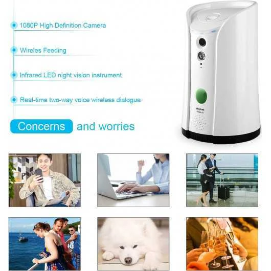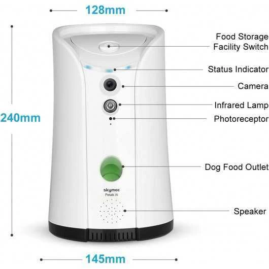 The Skymee Dog Camera has a 1080p Full HD webcam, 4x electronic zoom and night vision that allows you to clearly see your pet day and night and take videos.