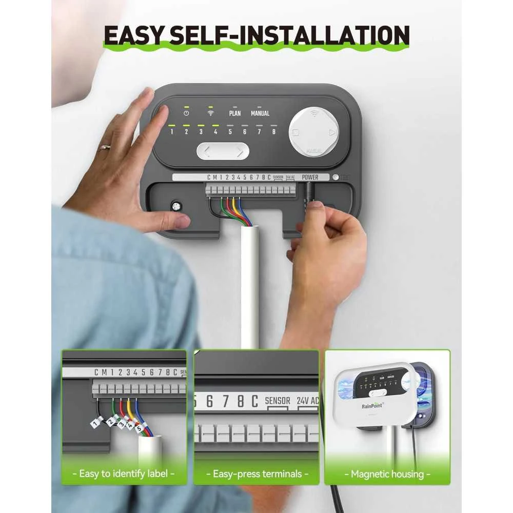 Reassuring Standard Compatibility: The RAINPOINT smart sprinkler controller adopts standard 24VAC specification, ensuring compatible with 99% of sprinkler system.