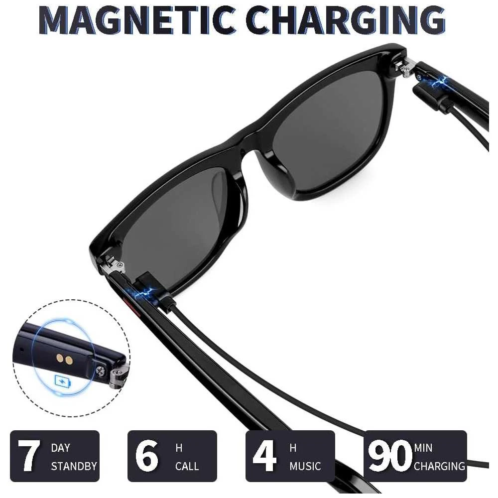 Sufficient Power: There is a large-capacity 100mAh battery on each side to provide sufficient power to ensure long-term battery life. The Bluetooth glasses can last about 7 days on standby, talk for about 6 hours, and play music for about 4 hours. The charging method is magnetic charging, and it takes about 90 minutes to fully charge.