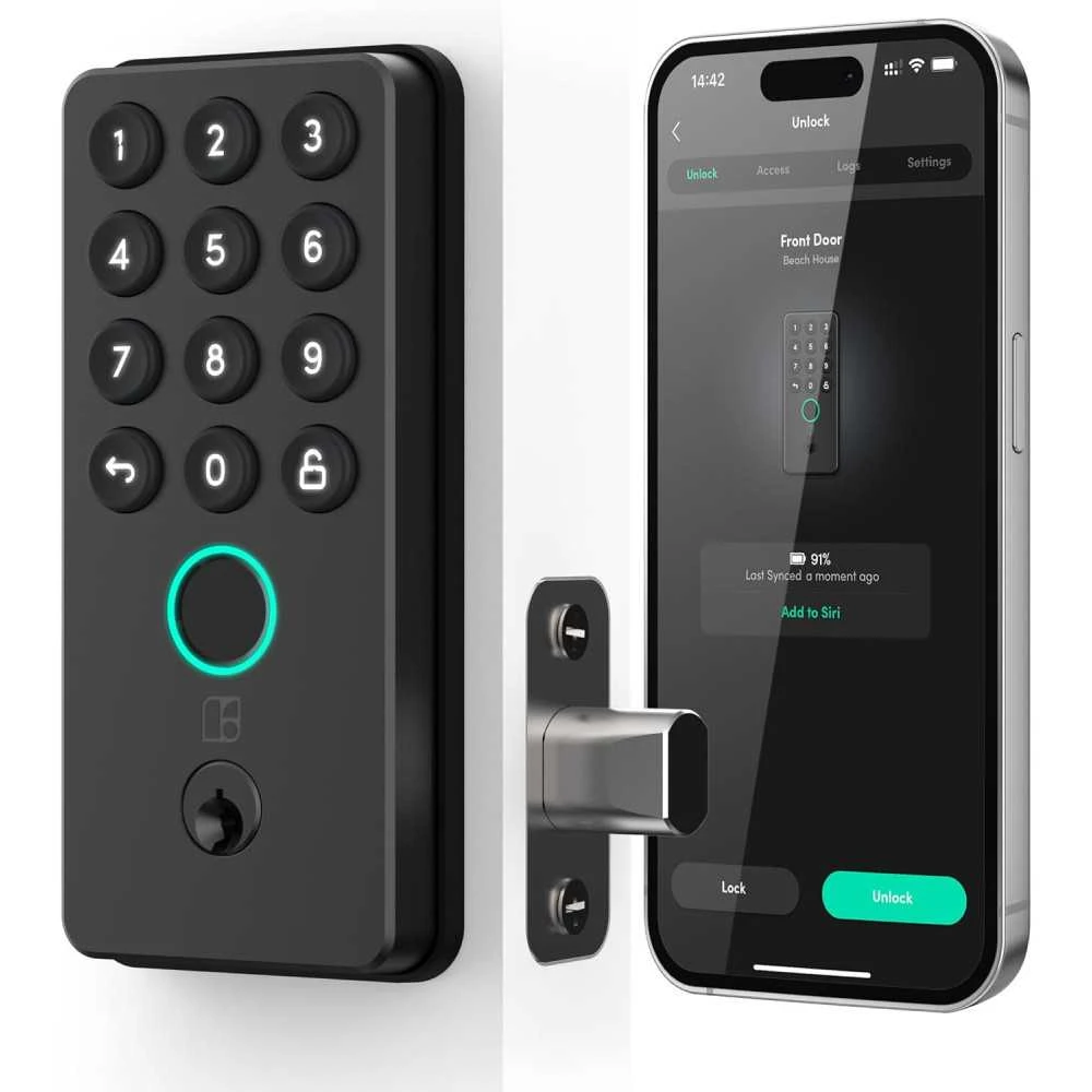 Smart Entry Options: Enjoy keyless convenience with fingerprint access, a user-friendly physical keypad with tactile buttons designed for zero-error input, Smartphone & Apple Watch apps enabling unlocking via voice, tap, or gestures.