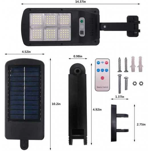The infrared sensor has a detection distance of 7m and a 120° detection angle. The solar street light uses upgraded solar panels with a larger surface. It’s light energy conversion rate is 25% higher than other ordinary solar panels. That makes it work even on cloudy days. 96 LED beads provide superb illumination and cover a wider area. The 6000mAh ultra-capacity battery provides enough power to run the light all night. You can use the remote control to control different modes directly. To completely charge the device, it needs 8 hours of sun exposure.