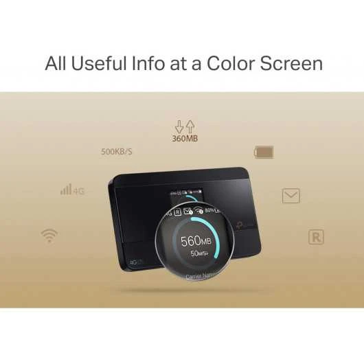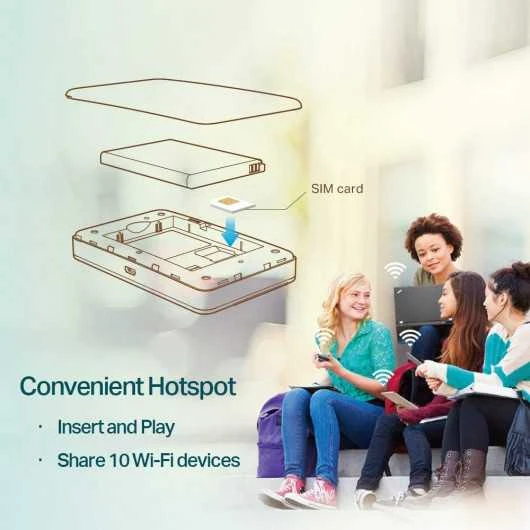 The TP-Link M7350 allows you to share 4G, 3G, and 2G connections on up to 10 devices including tablets, laptops, and cell phones at the same time. It supports WPA-PSK / WPA2-PSK encryption protocols, Black listing and SSID broadcasting enable/disable for a more secure connection. It has an LCD display that shows the connection speed, remaining or used data, messages and more.
