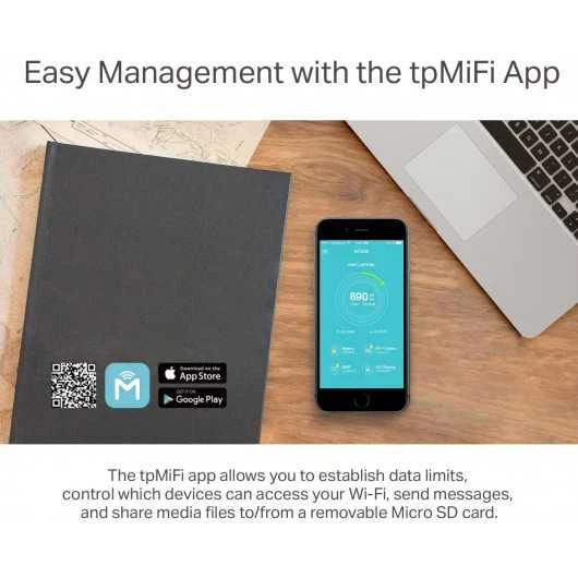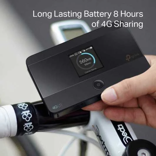 TP-Link M7350 is a small device that allows you to always have a very good wifi connection no matter where you are. It has a rechargeable battery, an SD card slot and a small LCD screen that shows you the connection speed, remaining or used data, messages and more.
