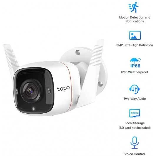 The TAPO C310 allows you to capture every detail with a resolution of 3MP at 2304 X1296P, it offers night vision with infrared lenses providing a clear and sharp image up to 30 meters away even in total darkness. . The camera has a built-in microphone and speaker that offers a smooth and clear two-way audio no matter where you are and that on your smartphone. The camera has a motion detection feature, which notifies you instantly when motion is detected and warns the authorities in case of theft or intrusion. It is a device that is perfect for being aware of what is happening in front of the front door of your house, parking lots, gas station and many others.