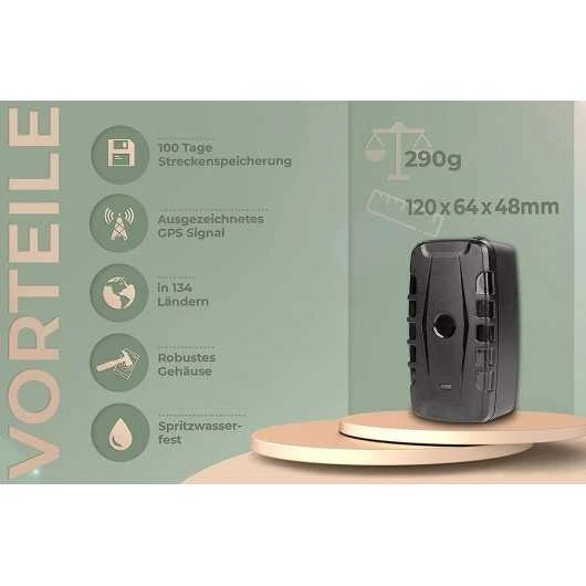 It has a rechargeable battery via a USB port and offers up to 180 days of standby time. The intelligent power saving feature ensures that the GPS tracker goes into standby mode when not in use. This extends the battery life repeatedly. It is made of robust materials to resist splashes.