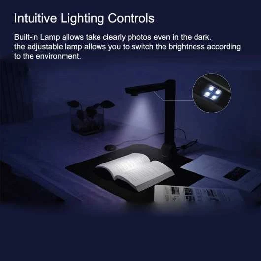 As a professional document camera, teachers can use it for remote teaching/distance education and students can collaborate on projects remotely. Workers can perform web conference calls and scan all types of documents such as books, receipts and contracts. It works especially well for scanning thick books and its foldable design and lightweight make you easy to carry around. It has an automatic flattening of curled pages and can automatically split them into two pages.