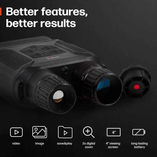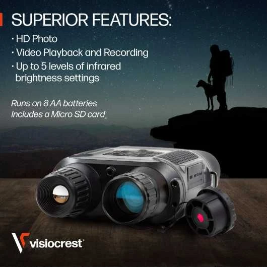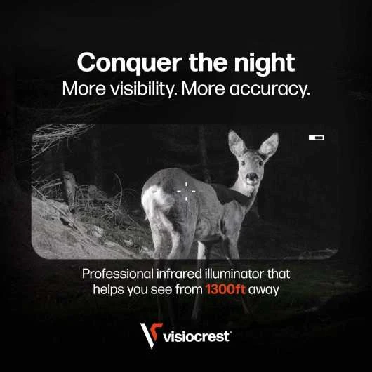 The Visiocrest offers a 4-inch viewing screen that provides a wide field of view allowing you to see 100% in the dark up to 400 meters away. It features a 2X digital zoom and 5 levels of adjustable light intensity to suit all uses including hunting, security, surveillance, guarding, research, wildlife observation, night fishing and more.