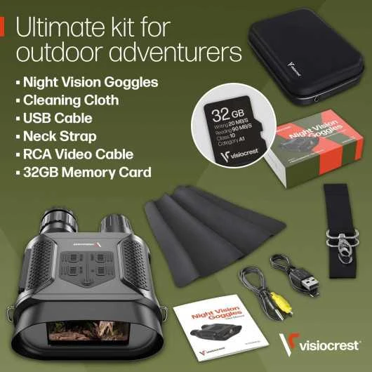 Visiocrest are night vision goggles with a maximum range of 400 meters thanks to a 2X digital zoom and 5 levels of adjustable light intensity. They have a slot for SD card that can accommodate a total memory of 32 GB to store up to 3 hours of video.
