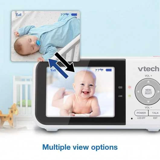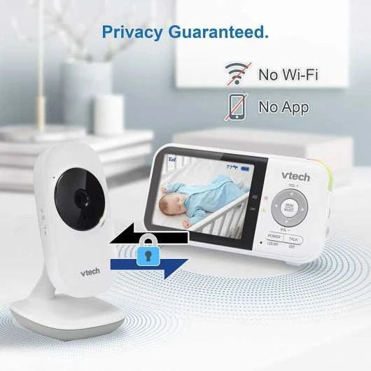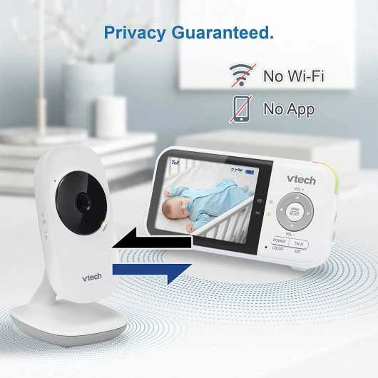 The system transmits via secure internal 2.4GHz channel between the parent unit and the camera so you can rest assured that you’re the only one who can see and hear your baby. |