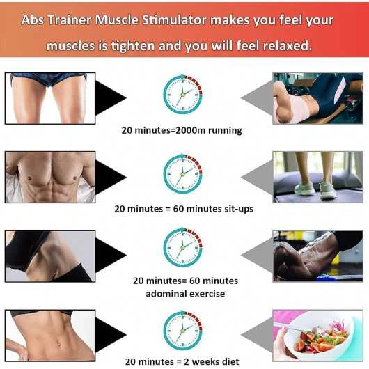 Abs Stimulator for Slender Abs Trainer Muscle Stimulator can help to tighten and strengthen your muscles, you will have a better body figure after consecutive use of Abs Stimulator for about 3 months.