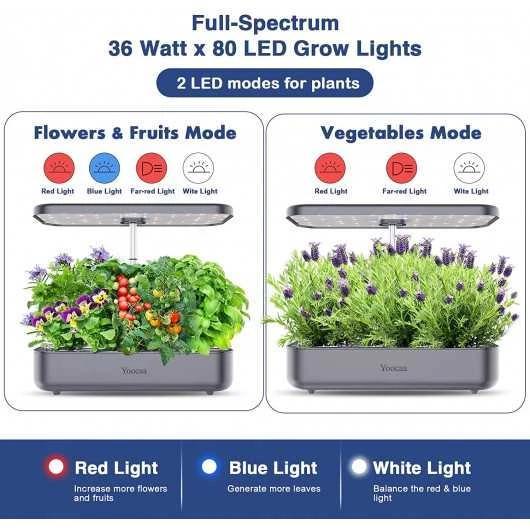 36 watt full Spectrum LED grow light system in your herb garden is tuned to the specific needs of plants to maximize photosynthesis, resulting in rapid, natural growth and abundant harvests, grows faster than planted outdoors.